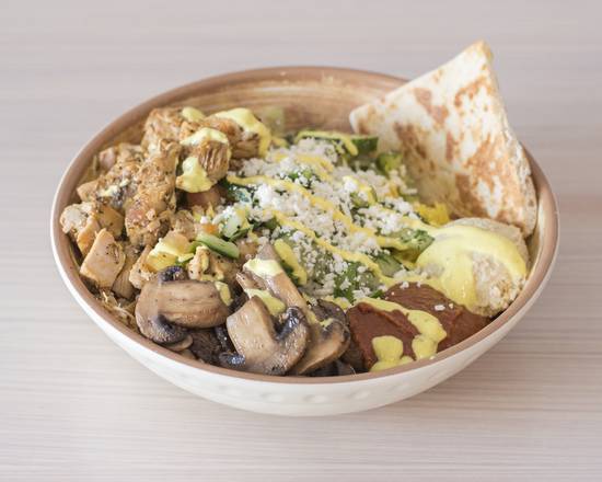 (BYOS) of delicious Mediterranean Falafel, Braised Lamb or Chicken In a Bowl ,Platter or Pita Wrap."
