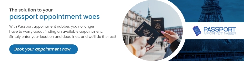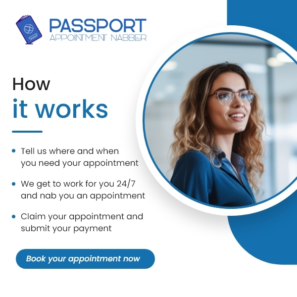 We are a leading passport appointment agency who specialize in securing USPS passport appointments, offering an efficient service to help you prepare for your travels. Our user-friendly platform allows you to easily schedule a passport appointment. Whether you're looking to apply for a US passport for the first time or renew your current one, trust Passport Appointment Nabber to make your passport application process a breeze.